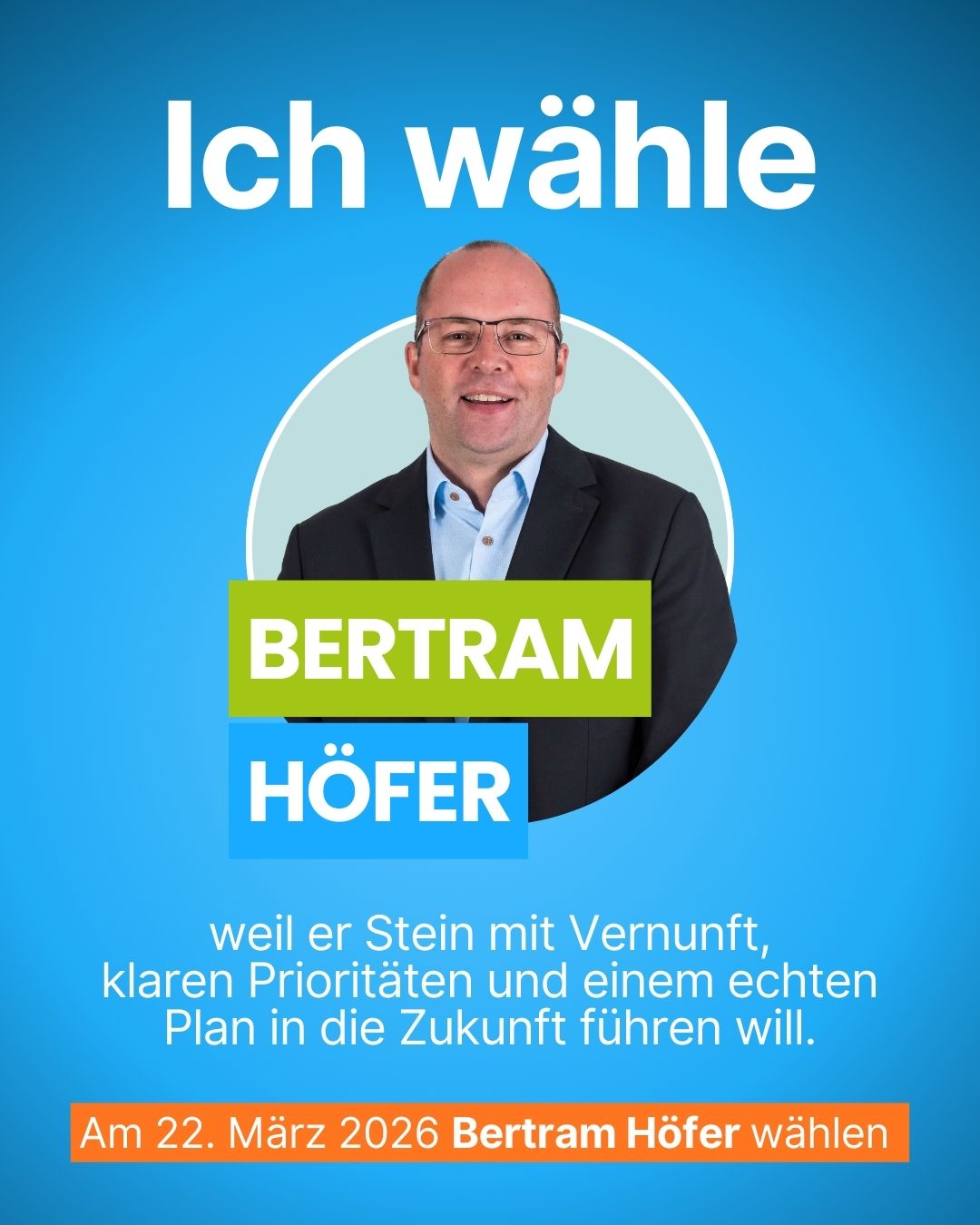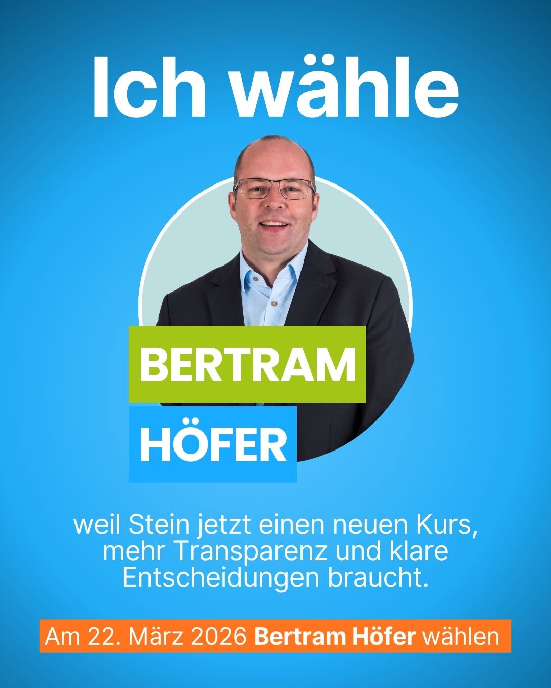 Wenn auch du dir einen neuen Aufbruch für Stein wünschst, unterstütze unseren Bürgermeisterkandidaten Bertram Höfer.